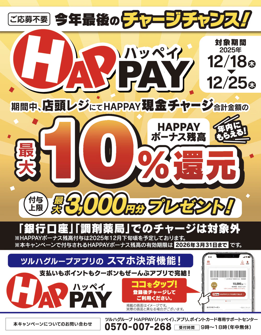 ※「HAPPAY」とは、ツルハグループが提供するスマホ決済サービスです。