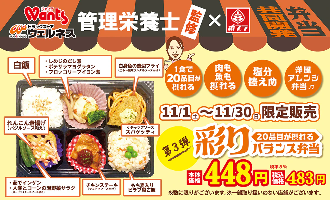 2025年11月1日(土)ウォンツの管理栄養士監修、ポプラ様と共同開発のお弁当が発売されました!